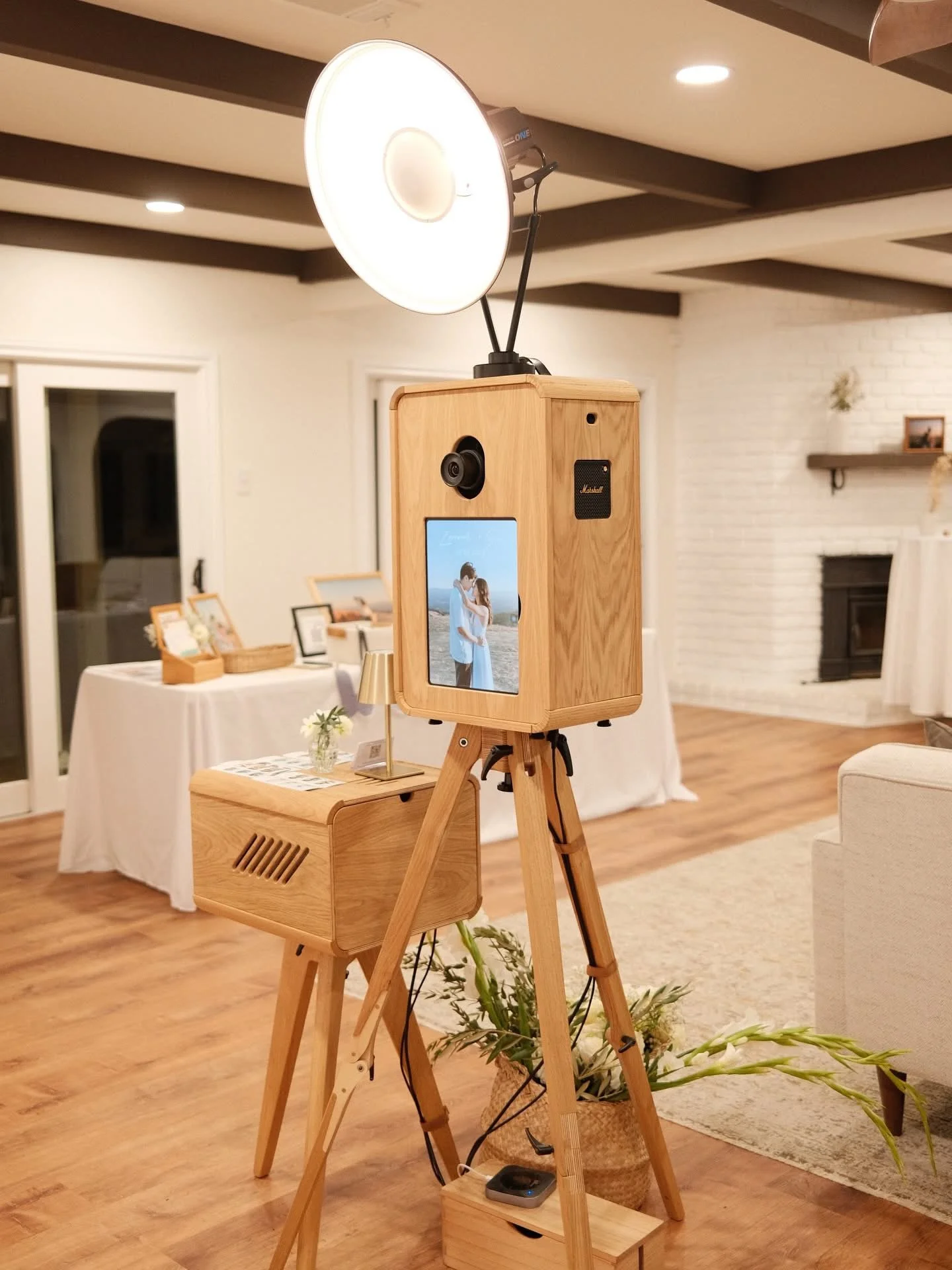 Timeless classic wooden booth with our matching printer station, beauty dish lighting, and dual touch screen display.